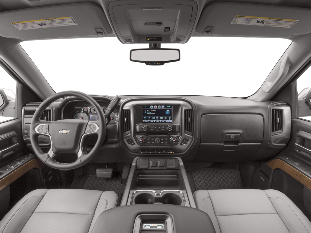 110-Volt AC Power Outlet, 150 Amp Alternator, 4-Wheel Disc Brakes, 4.2 Diagonal Color Display Driver Info Center, 40/20/40 Front Split Bench Seat, 6 Speaker Audio System, 6 Speakers, ABS brakes, Active Noise Cancellation, Air Conditioning, Alloy wheels, AM/FM radio: SiriusXM, Auto-dimming door mirrors, Auto-Dimming Inside Rear-View Mirror, Auto-dimming Rear-View mirror, Automatic temperature control, Auxiliary External Transmission Oil Cooler, Bluetooth® For Phone, Bodyside moldings, Bose Speaker System, Brake assist, CD player, Chrome Bodyside Moldings, Chrome Cap Power-Adjustable Heated Outside Mirrors, Chrome Door Handles, Chrome Mirror Caps, Color-Keyed Carpeting w/Rubberized Vinyl Floor Mats, Compass, Deep-Tinted Glass, Delay-off headlights, Driver & Front Passenger Illuminated Vanity Mirrors, Driver door bin, Driver vanity mirror, Dual front impact airbags, Dual front side impact airbags, Dual-Zone Automatic Climate Control, Electric Rear-Window Defogger, Electronic Stability Control, Emergency communication system: OnStar Guidance, Exterior Parking Camera Rear, EZ Lift & Lower Tailgate, Floor Mounted Console, Front anti-roll bar, Front Center Armrest w/Storage, Front Chrome Bumper, Front dual zone A/C, Front fog lights, Front Frame-Mounted Black Recovery Hooks, Front Full Feature Power Reclining Bucket Seats, Front License Plate Kit, Front reading lights, Front wheel independent suspension, Fully automatic headlights, Garage door transmitter, HD Radio, Heated & Vented Front Seating, Heated door mirrors, Heated Driver & Front Passenger Seats, Heated front seats, Heavy-Duty Rear Locking Differential, Illuminated entry, Leather Appointed Seat Trim, Leather Wrapped Steering Wheel w/Cruise Controls, LED Taillamps w/Signature, Low tire pressure warning, Manual Tilt/Telescoping Steering Column, Memory seat, Occupant sensing airbag, OnStar 6 Months Guidance Plan, OnStar w/4G LTE, Outside temperature display, Overhead airbag, Overhead console, Panic alarm, Passenger door bin, Passenger vanity mirror, Power door mirrors, Power driver seat, Power passenger seat, Power Sliding Rear Window, Power steering, Power windows, Power Windows w/Driver Express Up, Premium audio system: Chevrolet MyLink, Radio data system, Radio: AM/FM 8 Diagonal Clr Touch Nav, Radio: AM/FM 8 Diagonal Color Touch Screen, Rear 60/40 Folding Bench Seat (Folds Up), Rear Chrome Bumper, Rear reading lights, Rear seat center armrest, Rear step bumper, Rear Vision Camera w/Dynamic Guide Lines, Rear Wheelhouse Liners, Rear window defroster, Remote Keyless Entry, Remote keyless entry, Remote Locking Tailgate, Remote Vehicle Starter System, Security system, Single Slot CD/MP3 Player, SiriusXM Satellite Radio, Speed control, Speed-sensing steering, Split folding rear seat, Spray-On Pickup Box Bed Liner, Steering Wheel Audio Controls, Steering wheel mounted audio controls, Tachometer, Telescoping steering wheel, Theft Deterrent System (Unauthorized Entry), Thin Profile LED Fog Lamps, Tilt steering wheel, Traction control, Trailering Package, Trip computer, Turn signal indicator mirrors, Universal Home Remote, Variably intermittent wipers, Voltmeter, Wheels: 20 x 9 Chrome, Wireless Charging.