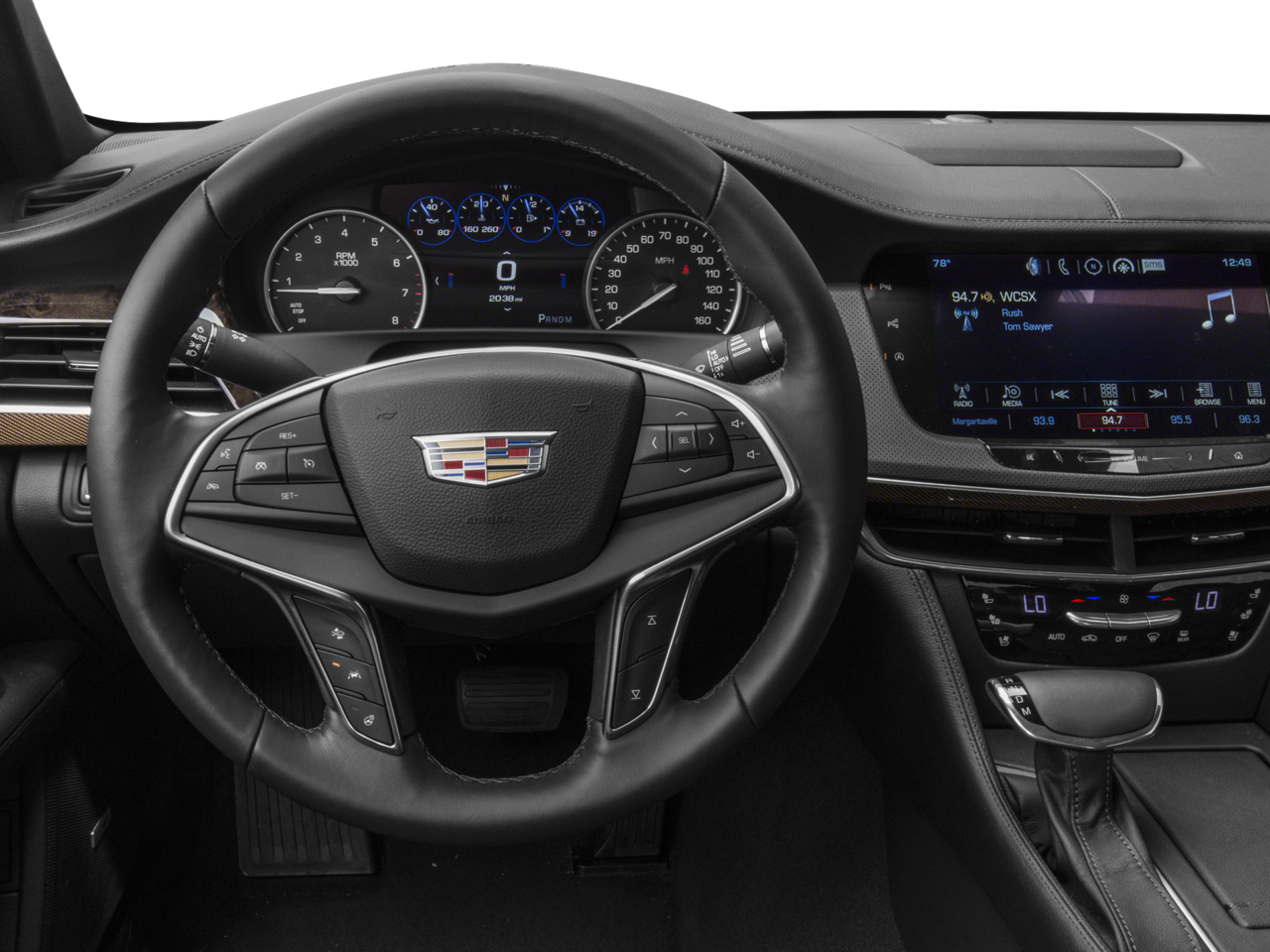 10 Speakers, 4-Wheel Disc Brakes, ABS brakes, Air Conditioning, Alloy wheels, AM/FM radio: SiriusXM, Apple CarPlay/Android Auto, Auto High-beam Headlights, Auto tilt-away steering wheel, Auto-dimming door mirrors, Auto-dimming Rear-View mirror, Automatic temperature control, Bose Premium Surround Sound 10-Speaker System, Brake assist, Bumpers: body-color, Comfort Package, Compass, Delay-off headlights, Driver door bin, Driver vanity mirror, Dual front impact airbags, Dual front side impact airbags, Dual Zone Automatic Climate Control, Electronic Automatic Cruise Control, Electronic Stability Control, Emergency communication system: OnStar Guidance, Enhanced Vision & Comfort Package, Four wheel independent suspension, Front anti-roll bar, Front Bucket Seats, Front Center Armrest w/Storage, Front dual zone A/C, Front reading lights, Fully automatic headlights, Garage door transmitter, Genuine wood console insert, Genuine wood door panel insert, Heated door mirrors, Heated Front Seats, Heated front seats, Heated Power-Adjustable Outside Mirrors, Heated steering wheel, Illuminated entry, Inside Rear-View Auto-Dimming Mirror, Knee airbag, Leather Seating Surfaces, Leather Seating Surfaces w/Chevron Perf Inserts, Leather Shift Knob, Leather steering wheel, Low tire pressure warning, Memory seat, Navigation System, Occupant sensing airbag, OnStar 1-Year Guidance Plan, OnStar 4G LTE, OnStar Basic Plan For 5 Years, Outside temperature display, Overhead airbag, Panic alarm, Passenger door bin, Passenger vanity mirror, Power door mirrors, Power driver seat, Power passenger seat, Power steering, Power windows, Preferred Equipment Group 1SD, Radio data system, Radio: Cadillac CUE Info/Media Ctrl w/Embedded Nav, Rain sensing wipers, Rear anti-roll bar, Rear reading lights, Rear seat center armrest, Rear Window Blind, Rear window defroster, Remote keyless entry, Security system, SiriusXM Satellite Radio & HD Radio, Speed control, Speed-sensing steering, Steering wheel memory, Steering wheel mounted audio controls, Tachometer, Telescoping steering wheel, Tilt steering wheel, Traction control, Trip computer, Turn signal indicator mirrors, UltraView Power Sunroof, Variably intermittent wipers, Ventilated Front Seat Cushions & Seatbacks, Voltmeter, Wheels: 19 x 8.5 Ultra-Bright Machined Aluminum.