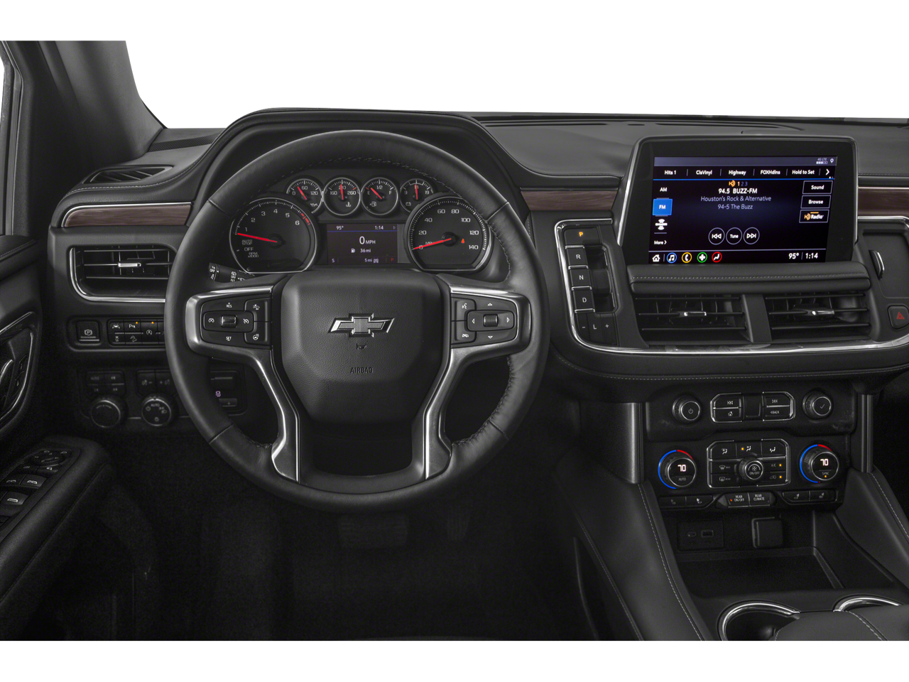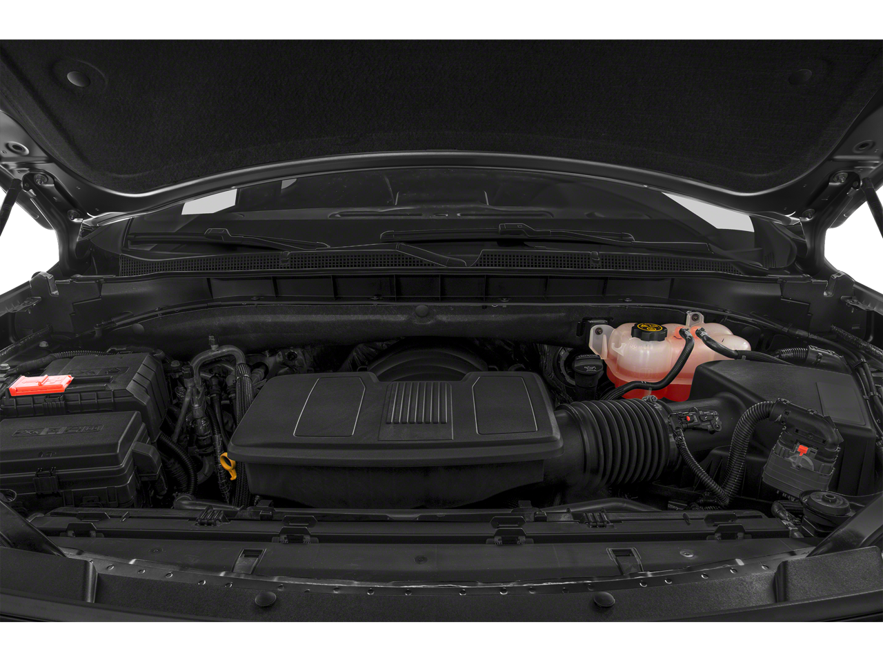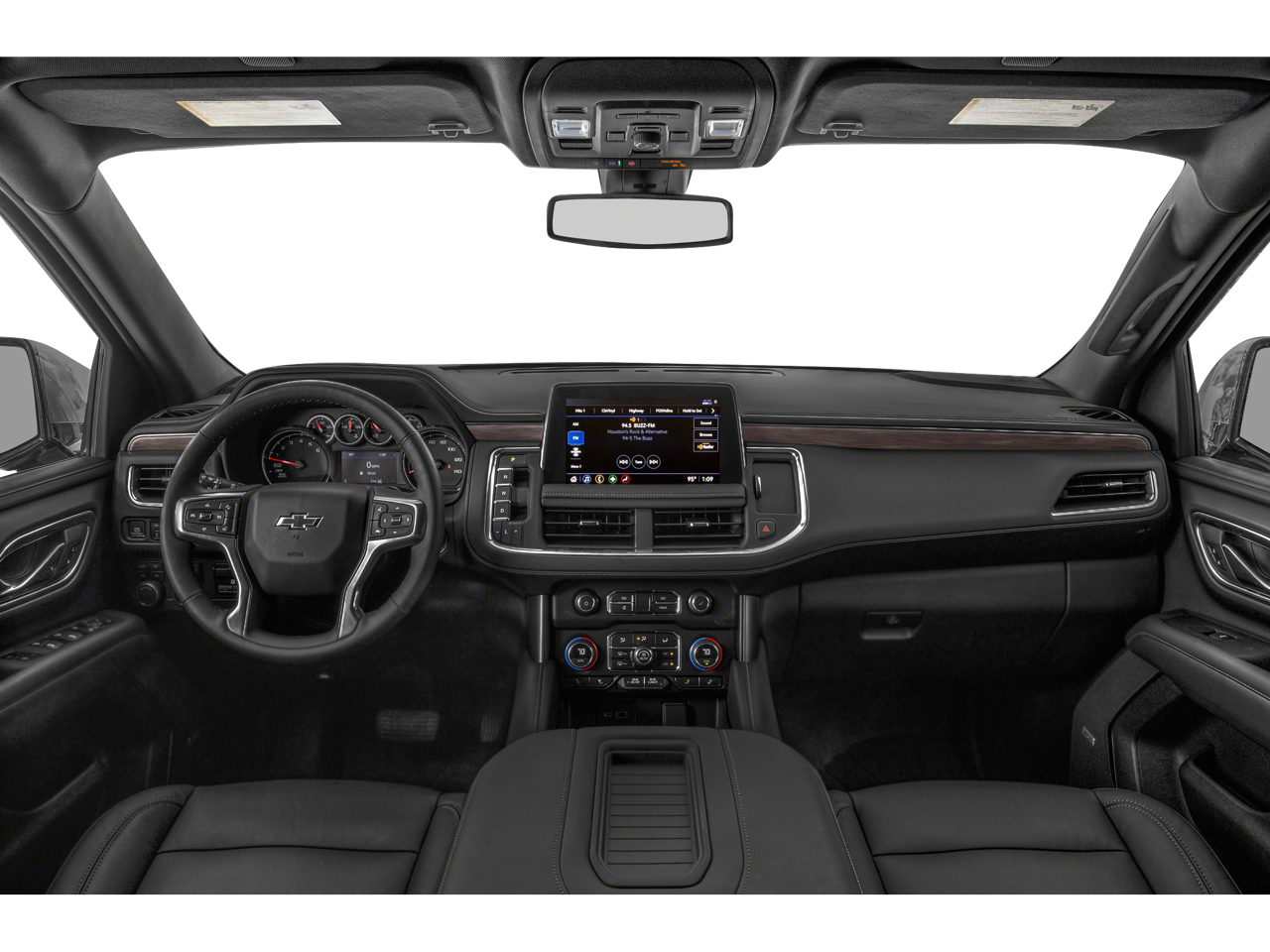 10-Way Power Driver & Passenger Seat Adjusters, 1st & 2nd Row Color-Keyed Carpeted Floor Mats, 2 USB Data Ports, 2-Speed Active Electronic AutoTrac Transfer Case, 2nd Row Manual Bucket Seats, 3.23 Rear Axle Ratio, 3rd row seats: split-bench, 4-Wheel Disc Brakes, 9 Speakers, ABS brakes, Air Conditioning, Alloy wheels, AM/FM radio: SiriusXM with 360L, Apple CarPlay/Android Auto, Auto High-beam Headlights, Auto-Dimming Inside Rear-View Mirror, Auto-dimming Rear-View mirror, Automatic temperature control, Black Tubular Assist Steps, Bose 9-Speaker Stereo Audio System Feature, Brake assist, Bright Front & Rear Door Sill Plates, Bumpers: body-color, Color-Keyed Carpeting Floor Covering, Compass, Delay-off headlights, Driver & Front Outboard Passenger Airbags, Driver door bin, Driver vanity mirror, Dual front impact airbags, Dual front side impact airbags, Electronic Stability Control, Emergency communication system: OnStar and Chevrolet connected services capable, Floor Console w/Storage Area, Four wheel independent suspension, Front anti-roll bar, Front Bucket Seats, Front Center Armrest, Front dual zone A/C, Front High-Approach Angle Fascia, Front High-Back Reclining Bucket Seats, Front reading lights, Fully automatic headlights, Garage door transmitter, Hands-Free Rear Power Programmable Liftgate, HD Radio, Heated door mirrors, Heated Driver & Front Passenger Seats, Heated front seats, Hill Descent Control, Illuminated entry, Infotainment Display, Leather Seat Trim, Leather steering wheel, Leather-Wrapped Steering Wheel, LED Daytime Running Lamps, Low tire pressure warning, Memory seat, Memory Settings for Driver, Occupant sensing airbag, Outside temperature display, Overhead airbag, Overhead console, Panic alarm, Passenger door bin, Passenger vanity mirror, Power door mirrors, Power driver seat, Power Liftgate, Power passenger seat, Power steering, Power windows, Preferred Equipment Group 2Z7, Premium audio system: Chevrolet Infotainment 3, Premium Smooth Ride Suspension, Radio: Chevrolet Infotainment 3 Plus System, Rain sensing wipers, Rear air conditioning, Rear anti-roll bar, Rear reading lights, Rear seat center armrest, Rear window defroster, Rear window wiper, Red Horizontal-Mounted Recovery Hooks, Remote keyless entry, Remote Start, Roof rack: rails only, Security system, SiriusXM Radio w/360L, Speed control, Speed-sensing steering, Split folding rear seat, Spoiler, Steering wheel mounted audio controls, Tachometer, Telescoping steering wheel, Tilt steering wheel, Traction control, Trip computer, Universal Home Remote, Variably intermittent wipers, Voltmeter, Wheels: 20 x 9 Machined Aluminum.