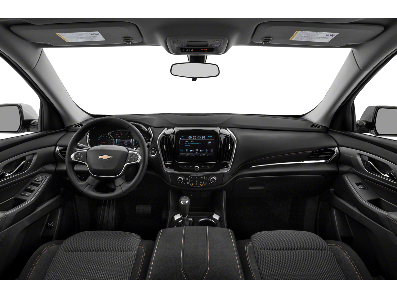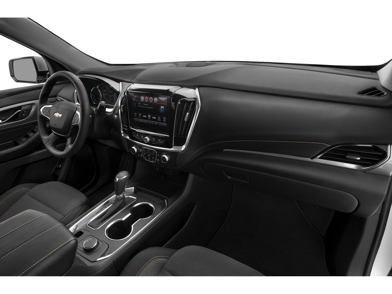 1st & 2nd Row All-Weather Floor Liner (LPO), 3.49 Axle Ratio, 3rd Row All-Weather Floor Liner (LPO), 3rd row seats: split-bench, 4-Wheel Disc Brakes, 6 Speakers, 7-Passenger Seating (2-2-3 Seating Configuration), ABS brakes, Air Conditioning, Alloy wheels, AM/FM radio: SiriusXM, Apple CarPlay/Android Auto, Automatic Emergency Braking, Automatic Heated Steering Wheel, Automatic temperature control, Brake assist, Bright Wheel Locks (LPO), Bumpers: body-color, Chevy Safety Assist, Compass, Delay-off headlights, Driver door bin, Driver vanity mirror, Dual front impact airbags, Dual front side impact airbags, Electronic Stability Control, Emergency communication system: OnStar and Chevrolet connected services capable, Floor Liner Package (LPO), Following Distance Indicator, Forward Collision Alert, Four wheel independent suspension, Front anti-roll bar, Front Bucket Seats, Front Center Armrest, Front dual zone A/C, Front fog lights, Front Pedestrian Braking, Front reading lights, Fully automatic headlights, Garage door transmitter, Heated door mirrors, Heated front seats, Heavy-Duty Cooling System, High-Intensity Discharge Headlights, Hitch Guidance w/Hitch View, Illuminated entry, Integrated Cargo Liner (LPO), IntelliBeam Auto High Beam Control Headlamps, Lane Keep Assist w/Lane Departure Warning, Leather steering wheel, Low tire pressure warning, Occupant sensing airbag, Outside temperature display, Overhead airbag, Overhead console, Panic alarm, Passenger door bin, Passenger vanity mirror, Power door mirrors, Power driver seat, Power Liftgate, Power steering, Power windows, Preferred Equipment Group 1LT, Premium Cloth Seat Trim, Radio data system, Radio: Chevrolet Infotainment 3 Plus System, Rear air conditioning, Rear anti-roll bar, Rear reading lights, Rear window defroster, Rear window wiper, Remote keyless entry, Roof rack: rails only, Security system, SiriusXM w/360L, Speed control, Speed-sensing steering, Spoiler, Steering wheel mounted audio controls, Tachometer, Telescoping steering wheel, Tilt steering wheel, Traction control, Trailering Assist Guidelines, Trailering Equipment, Trip computer, Turn signal indicator mirrors, Variably intermittent wipers, Voltmeter, Wheels: 18 Bright Silver Painted Aluminum.