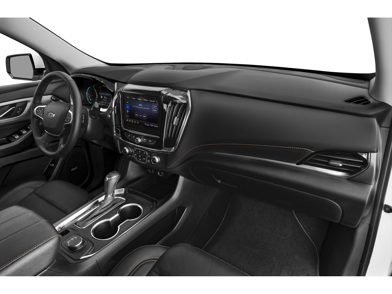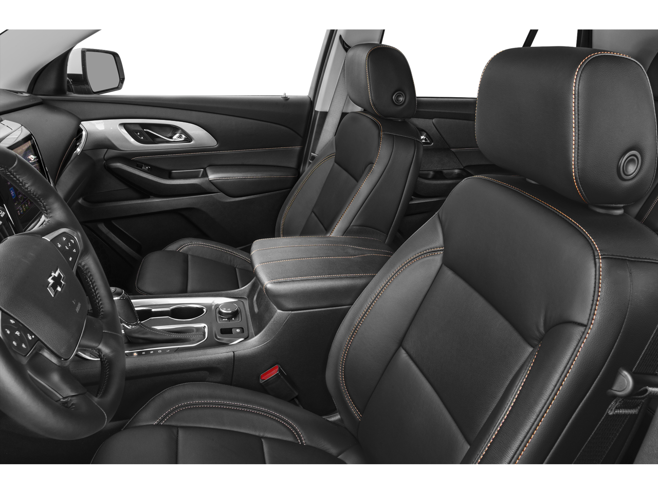 10 Speakers, 1st & 2nd Row All-Weather Floor Liner (LPO), 3.49 Axle Ratio, 3rd Row All-Weather Floor Liner (LPO), 3rd row seats: split-bench, 4-Wheel Disc Brakes, 7-Passenger Seating (2-2-3 Seating Configuration), ABS brakes, Air Conditioning, Alloy wheels, AM/FM radio: SiriusXM with 360L, Apple CarPlay/Android Auto, Auto High-beam Headlights, Auto-dimming Rear-View mirror, Automatic temperature control, Bose Premium 10-Speaker Audio System Feature, Brake assist, Bumpers: body-color, Compass, Delay-off headlights, Driver door bin, Driver vanity mirror, Dual front impact airbags, Dual front side impact airbags, Dual SkyScape 2-Panel Power Sunroof, Electronic Stability Control, Emergency communication system: OnStar and Chevrolet connected services capable, Floor Liner Package (LPO), Four wheel independent suspension, Front anti-roll bar, Front Bucket Seats, Front Center Armrest, Front dual zone A/C, Front fog lights, Front reading lights, Fully automatic headlights, Garage door transmitter, Gloss Black Emblem Kit (LPO), Heated door mirrors, Heated front seats, Heated steering wheel, High-Intensity Discharge Headlights, Illuminated entry, Integrated Cargo Liner (LPO), Lane Departure Warning System, Leather steering wheel, Leather-Appointed Seat Trim, Low tire pressure warning, Navigation System, Occupant sensing airbag, Outside temperature display, Overhead airbag, Overhead console, Panic alarm, Passenger door bin, Passenger vanity mirror, Power door mirrors, Power driver seat, Power Liftgate, Power passenger seat, Power steering, Power windows, Preferred Equipment Group 2LT, Premium audio system: Chevrolet MyLink, Radio data system, Radio: Chevrolet Infotainment 3 Premium System, Rear air conditioning, Rear anti-roll bar, Rear reading lights, Rear window defroster, Rear window wiper, Remote keyless entry, Roof rack: rails only, Security system, SiriusXM w/360L, Speed control, Speed-sensing steering, Spoiler, Steering wheel mounted audio controls, Tachometer, Telescoping steering wheel, Tilt steering wheel, Traction control, Trip computer, Turn signal indicator mirrors, Variably intermittent wipers, Voltmeter, Wheels: 20 Dark Android Painted Aluminum.