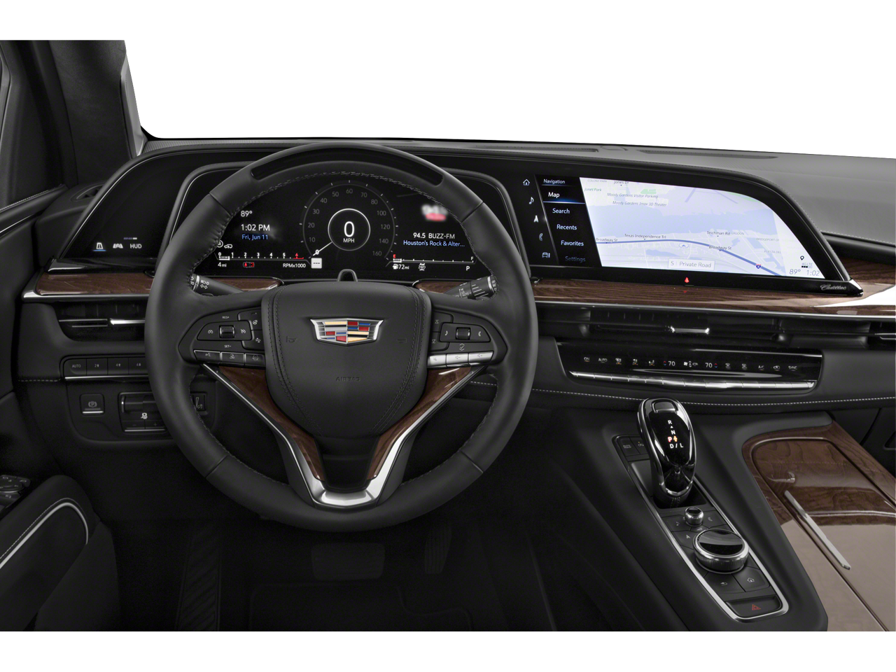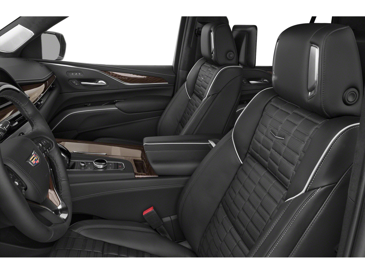 16.9 Diagonal OLED Infotainment Screen, 2-Presets Memory For Driver Seat Adjuster, 3.23 Axle Ratio, 3rd row seats: split-bench, 4-Way Power Driver Lumbar Seat Adjuster, 4-Way Power Front Passenger Lumbar Seat Adjuster, 4-Wheel Disc Brakes, 8-Way Power Driver Seat Adjuster, 8-Way Power Front Passenger Seat Adjuster, A/V remote, ABS brakes, Adaptive Cruise Control, Adaptive suspension, Air Conditioning, Air Ride Adaptive Suspension, AKG Studio Reference 36-Speaker Audio System, Alloy wheels, AM/FM radio: SiriusXM with 360L, Apple CarPlay/Android Auto, Audio memory, Auto High-beam Headlights, Auto tilt-away steering wheel, Auto-dimming door mirrors, Auto-dimming Rear-View mirror, Automatic Seat Belt Tightening, Automatic Stop/Start, Automatic temperature control, Body-Color Door Handles, Brake assist, Bumpers: body-color, Compass, Delay-off headlights, Door auto-latch, Door Lock & Latch Shields, Driver door bin, Driver vanity mirror, Dual front impact airbags, Dual front side impact airbags, Electronic Limited-Slip Differential, Electronic Stability Control, Emergency communication system: OnStar and Cadillac connected services capable, Enhanced Automatic Emergency Braking, Enhanced Automatic Parking Assist, Floor Console w/Covered Storage, Four wheel independent suspension, Front anti-roll bar, Front Auxiliary 12-volt Power Outlet, Front Bucket Seats, Front Center Armrest w/Storage, Front dual zone A/C, Front reading lights, Full Semi-Aniline Leather Seats, Fully automatic headlights, Garage door transmitter, Genuine wood console insert, Genuine wood dashboard insert, Genuine wood door panel insert, Glass Breakage Sensor, Gloss Black Escalade Nameplate (LPO), HD Radio, Headphones, Heads-Up Display, Heated & Ventilated Driver & Front Passenger Seats, Heated door mirrors, Heated Driver & Front Passenger Seats, Heated front seats, Heated rear seats, Heated steering wheel, Hitch Guidance w/Hitch View, Illuminated entry, Illuminating Front & Rear Sill Plates, Integrated Trailer Brake Controller, Leather steering wheel, Low tire pressure warning, Magnetic Ride Control Suspension, Memory seat, Monochrome Cadillac Emblems (LPO), Navigation System, Not Equipped w/2nd Row Express-Up/Down Windows, Not Equipped w/Steering Column Lock, Not Equipped w/Super Cruise, Occupant sensing airbag, Onyx Package (LPO), Outside temperature display, Overhead airbag, Overhead console, Panic alarm, Passenger door bin, Passenger vanity mirror, Platinum Interior Trim, Power door mirrors, Power driver seat, Power Liftgate, Power Lumbar Massage Driver Seat, Power Lumbar Massage Front Passenger Seat, Power moonroof, Power Panoramic Tilt-Sliding Sunroof, Power passenger seat, Power steering, Power windows, Power-Retractable Assist Steps, Preferred Equipment Group 1SH, Radio data system, Radio: AM/FM/SiriusXM w/Navigation, Rain sensing wipers, Rear air conditioning, Rear anti-roll bar, Rear audio controls, Rear Camera Mirror, Rear Camera Mirror Washer, Rear Cross Traffic Alert, Rear reading lights, Rear Seat Entertainment System, Rear window defroster, Rear window wiper, Reconfigurable Full-Color Head-Up Display, Remote keyless entry, Reverse Automatic Braking, Roof rack: rails only, Running Board Assist Steps, Security system, SiriusXM w/360L, Smart Trailer Integration Indicator, Soft Closing Fron