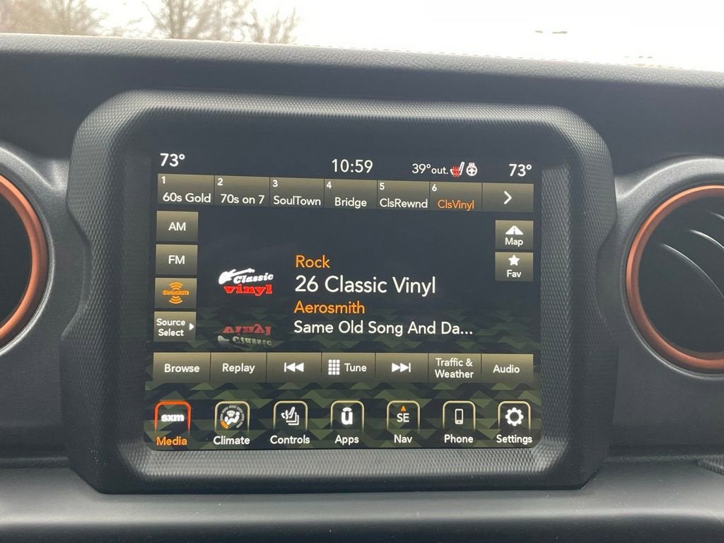 240 Amp Alternator, 4-Wheel Disc Brakes, 4.10 Rear Axle Ratio, 9 Speakers, 97 MPH Vehicle Max Speed Calibration, ABS brakes, Air Conditioning, Alloy wheels, AM/FM radio: SiriusXM, Apple CarPlay/Android Auto, Auto-dimming Rear-View mirror, Automatic temperature control, Black 3-Piece Hard Top, Brake assist, Class IV Receiver Hitch, Cold Weather Group, Compass, Corning Gorilla Glass, Delay-off headlights, Driver door bin, Driver vanity mirror, Dual front impact airbags, Dual front side impact airbags, Electronic Stability Control, Emergency communication system: SiriusXM Guardian, Freedom Panel Storage Bag, Front anti-roll bar, Front Bucket Seats, Front Center Armrest w/Storage, Front dual zone A/C, Front fog lights, Front reading lights, Fully automatic headlights, Garage door transmitter, Heated door mirrors, Heated Front Seats, Heated Steering Wheel, Heavy Duty Suspension w/Gas Shocks, Heavy-Duty Engine Cooling, Illuminated entry, Integrated roll-over protection, Leather steering wheel, Low tire pressure warning, Navigation System, Occupant sensing airbag, Outside temperature display, Panic alarm, ParkView Rear Back-Up Camera, Passenger door bin, Passenger vanity mirror, Power door mirrors, Power steering, Power windows, Premium Cloth Seats w/Sport Bolsters, Quick Order Package 24D, Radio data system, Radio: Uconnect 4C Nav w/8.4 Display, Rear anti-roll bar, Rear reading lights, Rear Sliding Window, Rear Window Defroster, Remote keyless entry, Remote Start System, Security system, Selec-Trac Full Time 4WD System, Speed control, Split folding rear seat, Steering wheel mounted audio controls, Tachometer, Telescoping steering wheel, Tilt steering wheel, Traction control, Trailer Hitch Zoom, Trailer Tow Package, Trip computer, Variably intermittent wipers, Voltmeter, Wheels: 17 x 7.5 Low Gloss Black Aluminum, Wheels: 17 x 7.5 Low Gloss Black Polished.