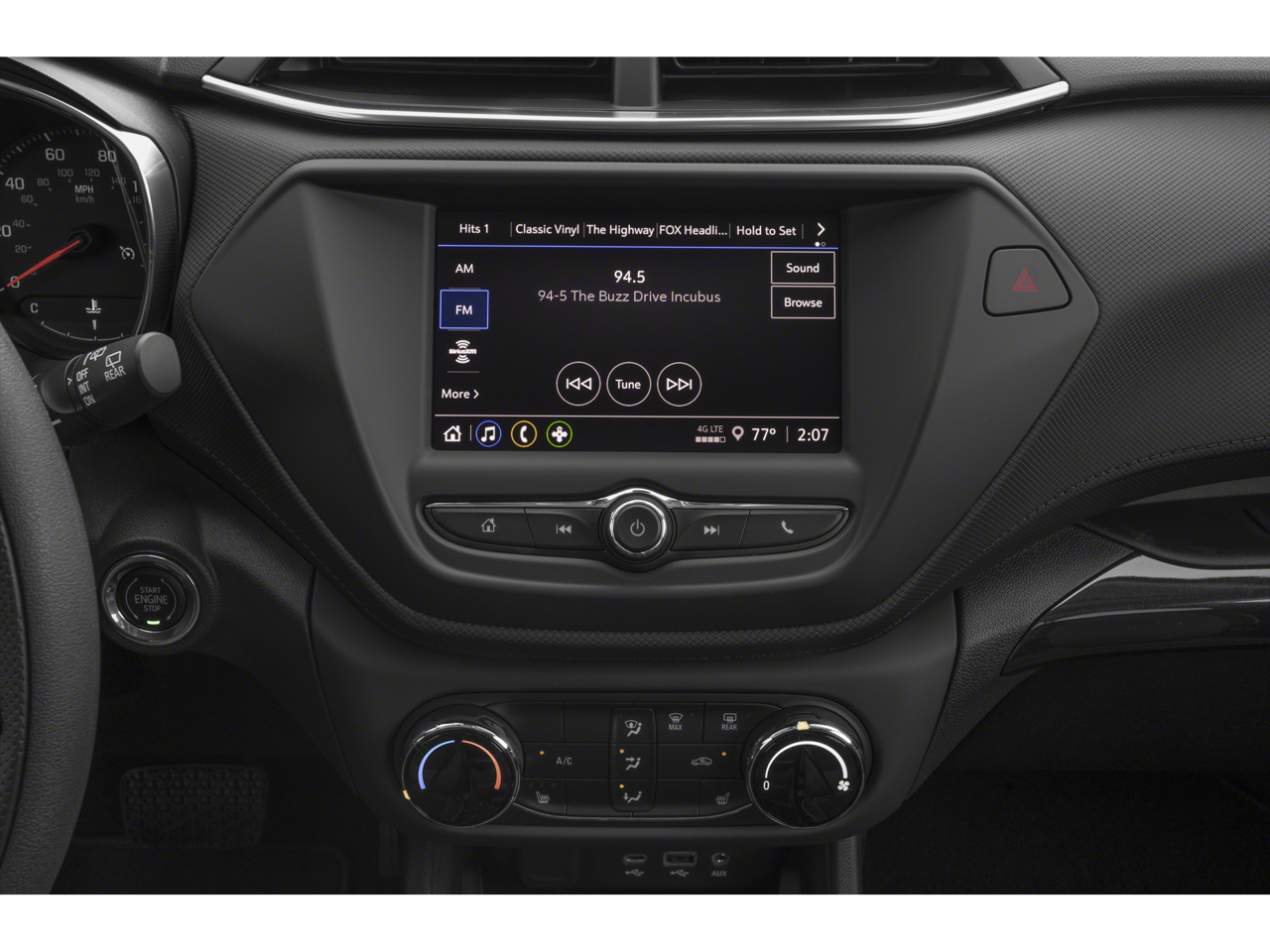 1 Type-A & 1 Type-C USB Charging-Only Ports, 120-Volt Power Outlet, 2-Way Adjustable Front Head Restraints, 2-Way Power Driver Lumbar Seat Adjuster, 3.17 Axle Ratio, 4-Way Manual Front Passenger Seat Adjuster, 4-Wheel Disc Brakes, 6 Speakers, 6-Speaker Audio System Feature w/Amplifier, 7 Diagonal Color Touchscreen, 8-Way Power Driver Seat Adjuster, 8 Diagonal Color Touchscreen Display, ABS brakes, Air Conditioning, Alloy wheels, AM/FM radio: SiriusXM, Auto High-beam Headlights, Brake assist, Bumpers: body-color, Cabin Humidity Sensor, Cloth Seat Trim, Compass, Convenience Package, Delay-off headlights, Driver & Front Passenger Illuminated Vanity Mirrors, Driver Confidence Package, Driver door bin, Driver vanity mirror, Dual front impact airbags, Dual front side impact airbags, Electronic Stability Control, Emergency communication system: OnStar and Chevrolet connected services capable, Exterior Parking Camera Rear, Flat-Folding Front Passenger Seatback, Front anti-roll bar, Front Bucket Seats, Front Center Armrest, Front fog lights, Front reading lights, Front wheel independent suspension, Fully automatic headlights, Heated door mirrors, Heated Driver & Front Passenger Seats, Heated front seats, Illuminated entry, Inside Rear-View Auto-Dimming Mirror, Knee airbag, Lane Change Alert w/Side Blind Zone Alert, Low tire pressure warning, Not Equipped w/Rear Park Assist (060), Occupant sensing airbag, Overhead airbag, Overhead console, Panic alarm, Passenger door bin, Passenger vanity mirror, Power door mirrors, Power driver seat, Power steering, Power windows, Preferred Equipment Group 1LT, Radio data system, Radio: Chevrolet Infotainment 3 System, Rear Cross Traffic Alert, Rear Park Assist, Rear side impact airbag, Rear window defroster, Rear window wiper, Remote keyless entry, Ride & Handling Suspension, Security system, Single-Zone Auto Climate Control Air Conditioning, SiriusXM Radio, Speed control, Split folding rear seat, Spoiler, Steering wheel mounted audio controls, Tachometer, Telescoping steering wheel, Tilt steering wheel, Traction control, Trip computer, Variably intermittent wipers, Wheels: 17 High Gloss Black Machined Aluminum, Wireless Apple CarPlay/Android Auto.