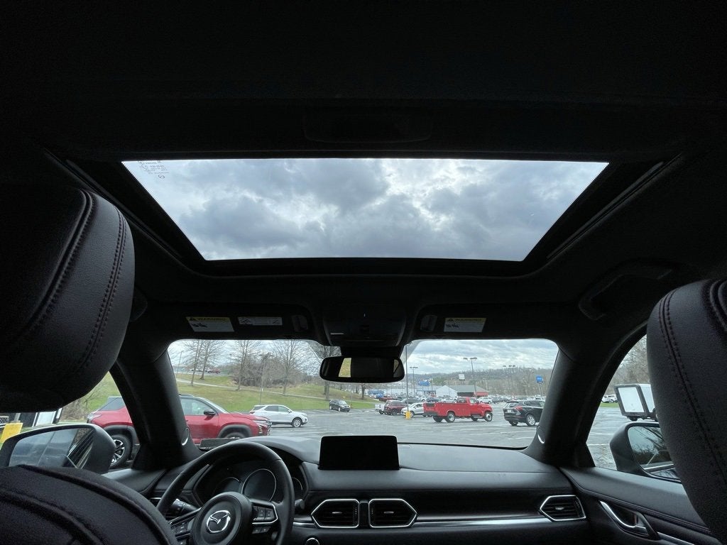 10 Speakers, 4-Wheel Disc Brakes, ABS brakes, Air Conditioning, Alloy wheels, AM/FM radio: SiriusXM, AppLink/Apple CarPlay and Android Auto, Auto High-beam Headlights, Auto-dimming Rear-View mirror, Automatic temperature control, Black Lug Nuts & Black Wheel Locks, Brake assist, Bumpers: body-color, Cargo Net, Delay-off headlights, Driver door bin, Driver vanity mirror, Dual front impact airbags, Dual front side impact airbags, E911 Automatic Emergency Notification, Electronic Stability Control, Emergency communication system: MAZDA CONNECT, Four wheel independent suspension, Front anti-roll bar, Front Bucket Seats, Front Center Armrest w/Storage, Front dual zone A/C, Front reading lights, Fully automatic headlights, Garage door transmitter: HomeLink, Heads-Up Display, Heated door mirrors, Heated front seats, Heated rear seats, Heated steering wheel, Heated/Ventilated Front Bucket Seats, Illuminated entry, Infotainment System Voice Command, Leather Seat Trim, Leather Shift Knob, Leather steering wheel, Low tire pressure warning, Memory seat, Multifunction Commander Control, Occupant sensing airbag, Outside temperature display, Overhead airbag, Overhead console, Pandora, Panic alarm, Passenger door bin, Passenger vanity mirror, Power door mirrors, Power driver seat, Power Liftgate, Power moonroof, Power passenger seat, Power steering, Power windows, Radio Broadcast Data System Program Information, Radio data system, Radio: AM/FM/HD Audio System, Rain sensing wipers, Rear anti-roll bar, Rear Bumper Guard, Rear reading lights, Rear seat center armrest, Rear window defroster, Rear window wiper, Remote keyless entry, SMS Text Msg Audio Delivery & Reply, Speed control, Speed-sensing steering, Split folding rear seat, Spoiler, Steering wheel mounted audio controls, Tachometer, Telescoping steering wheel, Tilt steering wheel, Traction control, Trip computer, Turn signal indicator mirrors, Variably intermittent wipers, Ventilated front seats, Wheels: 19 x 7J Aluminum Alloy.