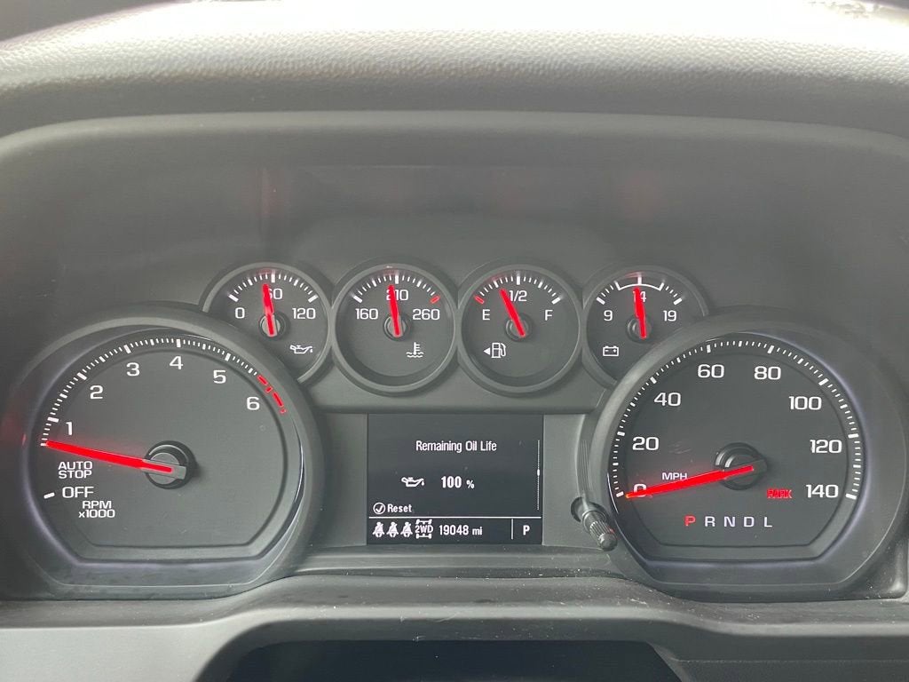 10-Way Power Driver Seat w/Lumbar, 120-Volt Bed Mounted Power Outlet, 120-Volt Interior Power Outlet, 170 Amp Alternator, 220 Amp Alternator, 3.23 Rear Axle Ratio, 3.42 Rear Axle Ratio, 3.5 Monochromatic Display Driver Info Center, 4-Wheel Disc Brakes, 4 Black Round Assist Steps (LPO), 40/20/40 Front Split-Bench Seat, 6 Speakers, 6-Speaker Audio System, ABS brakes, Air Conditioning, Alloy wheels, AM/FM radio: SiriusXM, Apple CarPlay/Android Auto, Auto High-beam Headlights, Auto-Locking Rear Differential, Automatic Emergency Braking, Auxiliary External Transmission Oil Cooler, Black Name Plates (LPO), Black Tailgate CHEVROLET Lettering (LPO), Bluetooth® For Phone, Brake assist, Cloth Seat Trim, Color-Keyed Carpeting Floor Covering, Compass, Custom Convenience Package, Dark Essentials Package (LPO), Deep-Tinted Glass, Delay-off headlights, Driver door bin, Driver vanity mirror, Dual Exhaust w/Black Exhaust Tips, Dual Exhaust w/Polished Outlets, Dual front impact airbags, Dual front side impact airbags, Dual Rear USB Ports (Charge Only), Electric Rear-Window Defogger, Electronic Cruise Control, Electronic Stability Control, Emergency communication system: OnStar, External Engine Oil Cooler, EZ Lift Power Lock & Release Tailgate, Following Distance Indicator, Forward Collision Alert, Front anti-roll bar, Front Center Armrest w/Storage, Front Pedestrian Braking, Front reading lights, Front Rubberized Vinyl Floor Mats, Front wheel independent suspension, Fully automatic headlights, HD Rear Vision Camera, Heated door mirrors, Heavy-Duty Air Filter, Hill Descent Control, Hitch Guidance, Illuminated entry, IntelliBeam Automatic High Beam On/Off, Lane Keep Assist w/Lane Departure Warning, LED Cargo Area Lighting, Low tire pressure warning, Manual Tilt Wheel Steering Column, Occupant sensing airbag, OnStar Services Capable, Outside temperature display, Overhead airbag, Overhead console, Panic alarm, Passenger door bin, Passenger vanity mirror, Performance Red Recovery Hooks, Power door mirrors, Power driver seat, Power Front Windows w/Driver Express Up/Down, Power Front Windows w/Passenger Express Down, Power Rear Windows w/Express Down, Power steering, Power windows, Preferred Equipment Group 2CX, Premium audio system: Chevrolet Infotainment 3, Radio data system, Radio: Chevrolet Infotainment 3 System, Rear 60/40 Folding Bench Seat (Folds Up), Rear reading lights, Rear Rubberized-Vinyl Floor Mats, Rear step bumper, Rear window defroster, Remote Keyless Entry, Remote keyless entry, Remote Vehicle Starter System, Security system, Single Outlet Exhaust, SiriusXM Trial Subscription, Speed control, Speed-sensing steering, Split folding rear seat, Standard Tailgate, Suspension Package, Tachometer, Teen Driver, Theft Deterrent System (Unauthorized Entry), Tilt steering wheel, Tire Pressure Monitoring System, Traction control, Trailering Package, Trip computer, Variably intermittent wipers, Voltmeter, Wheels: 18 x 8.5 Black Painted Aluminum, Wi-Fi Hot Spot Capable.