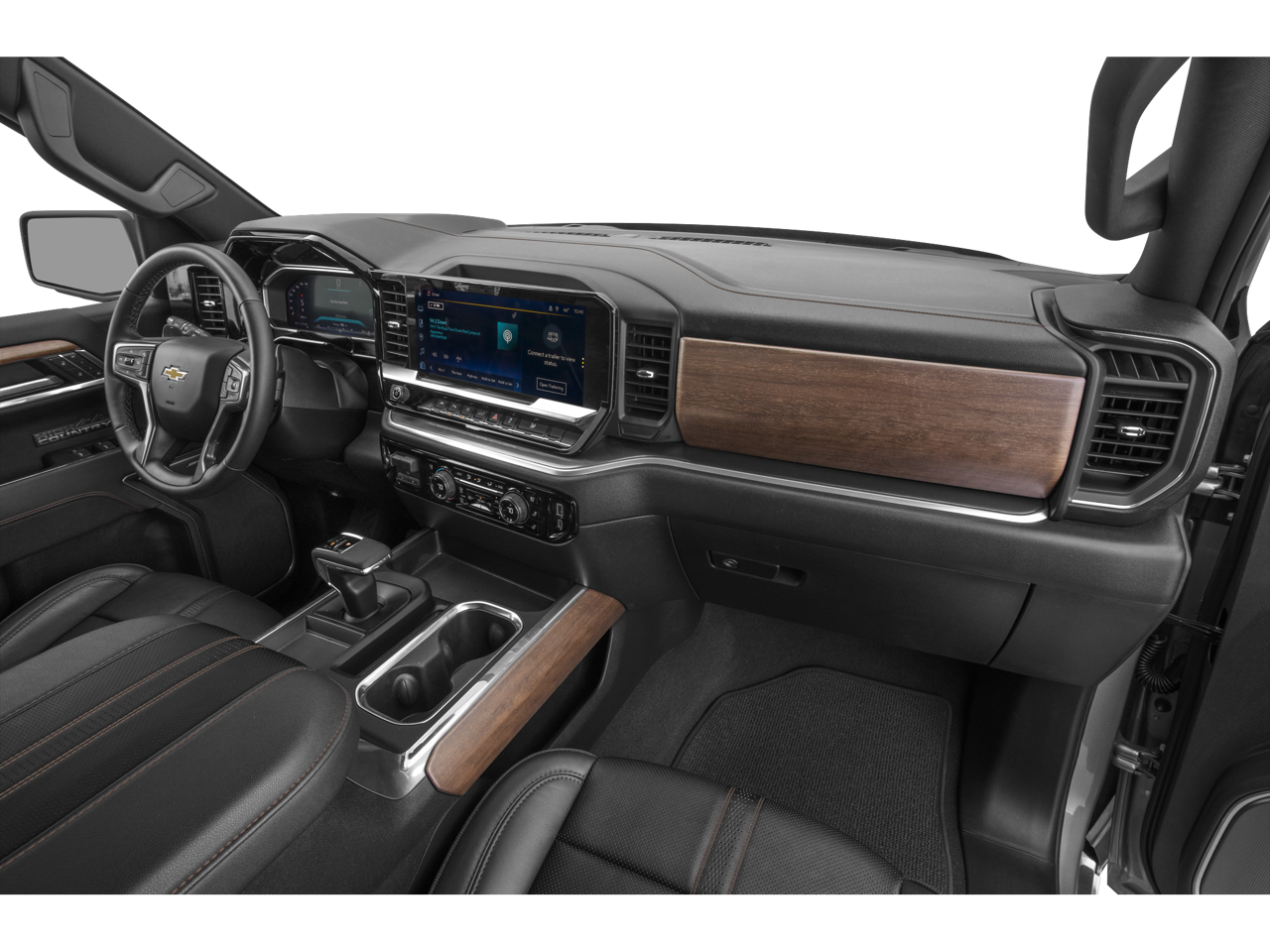 10-Way Power Driver Seat w/Lumbar, 10-Way Power Passenger Seat Adjuster w/Lumbar, 12.3 Multicolor Reconfigurable Digital Display, 120-Volt Bed Mounted Power Outlet, 120-Volt Interior Power Outlet, 15 Diagonal Multicolor Head-Up Display, 170 Amp Alternator, 2 USB Data Ports, 2nd Row Heated Outboard Seats, 3.23 Rear Axle Ratio, 4-Wheel Disc Brakes, 7 Speakers, ABS brakes, Adaptive Cruise Control, Adaptive Ride Control Suspension, Air Conditioning, All-Weather Floor Liner (LPO), Alloy wheels, AM/FM radio: SiriusXM with 360L, Apple CarPlay/Android Auto, Auto High-beam Headlights, Auto-dimming door mirrors, Auto-Dimming Inside Rear-View Mirror, Auto-dimming Rear-View mirror, Auto-Locking Rear Differential, Automatic temperature control, Bed View Camera, Bluetooth® For Phone, Body-Color Painted Mirror Caps, Bodyside moldings, Brake assist, Bumpers: body-color, Chevytec Spray-On Black Bedliner, Chrome Assist Steps, Chrome Recovery Hooks, Color-Keyed Carpeting Floor Covering, Compass, Deep-Tinted Glass, Delay-off headlights, Driver door bin, Driver Memory, Driver vanity mirror, Dual Active Exhaust, Dual Exhaust w/Polished Outlets, Dual front impact airbags, Dual front side impact airbags, Dual Rear USB Ports (Charge Only), Electric Rear-Window Defogger, Electronic Stability Control, Electronic Transmission Range Selector Shifter, Emergency communication system: OnStar, Enhanced Automatic Emergency Braking, Floor Mounted Center Console, Following Distance Indicator, Forward Collision Alert, Front anti-roll bar, Front Bucket Seats, Front Carpeted Floor Mats, Front Center Armrest, Front dual zone A/C, Front fog lights, Front LED Fog Lamps, Front Pedestrian Braking, Front Rain-Sensing Wipers, Front reading lights, Front wheel independent suspension, Fully automatic headlights, Garage door transmitter, Genuine wood console insert, Genuine wood dashboard insert, Genuine wood door panel insert, HD Surround Vision, Heated door mirrors, Heated Driver & Front Outboard Passenger Seats, Heated front seats, Heated rear seats, Heated Steering Wheel, Heated steering wheel, High Capacity Suspension Package, High Country Premium Package, Hitch Guidance, Hitch Guidance w/Hitch View, Illuminated entry, In-Vehicle Trailering System App, Integrated Trailer Brake Controller, IntelliBeam Automatic High Beam On/Off, Keyless Open & Start, Lane Keep Assist w/Lane Departure Warning, LED Cargo Area Lighting, Low tire pressure warning, Memory seat, Occupant sensing airbag, OnStar Services Capable, Outside Heated Power-Adjustable Mirrors, Outside temperature display, Overhead airbag, Overhead console, Panic alarm, Passenger door bin, Passenger vanity mirror, Perforated Leather Seat Trim, Perimeter Lighting, Power door mirrors, Power driver seat, Power Front Passenger Windows w/Express Up/Down, Power Front Windows w/Driver Express Up/Down, Power passenger seat, Power Rear Windows w/Express Down, Power Sliding Rear Window w/Rear Defogger, Power steering, Power Sunroof, Power Tailgate, Power Tilt & Telescoping Steering Column, Power windows, Preferred Equipment Group 3LZ, Premium audio system: Chevrolet Infotainment 3 Premium, Premium Bose 7-Speaker Sound System, Radio data system, Radio: Chevrolet Infotainment 3 Premium System, Rain sensing wipers, Rear Camera Mirror, Rear Carpeted Floor Mats, Rear Cross Traffic Braking, Rear Pedestrian Alert, Rear reading lights, Rear seat center armrest, Rear step bumper, Rear Wheelhouse Liners, Rear window defroster, Remote keyless entry, Remote Vehicle Starter System, Safety Alert Seat, Security system, SiriusXM w/360L Trial Subscription, Speed control, Speed-sensing steering, Split folding rear seat, Standard Tailgate, Steering Wheel Audio Controls, Steering wheel mounted audio con
