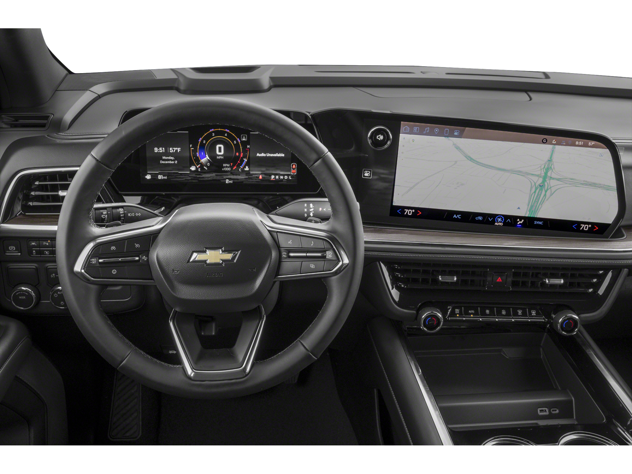 1st and 2nd Rows All-Weather Floor Liners, 2-Way Driver Power Lumbar Seat Adjuster, 2-Way Front Passenger Power Lumbar Seat Adjuster, 3.23 Rear Axle Ratio, 3rd Row All-Weather Floor Liners, 3rd row seats: split-bench, 4-Wheel Disc Brakes, 6 Speakers, 6-Speaker Audio System, 6-Way Power Front Passenger Seat Adjuster, 8-Way Power Driver Seat Adjuster, ABS brakes, Air Conditioning, All-Weather Cargo Mat, All-Weather Liner Protection Package, Alloy wheels, AM/FM radio: SiriusXM with 360L, Apple CarPlay/Android Auto, Auto High-beam Headlights, Automatic temperature control, Brake assist, Bumpers: body-color, Center Floor Console Delete, Compass, Delay-off headlights, Driver and Front Outboard Passenger Airbags, Driver door bin, Driver vanity mirror, Dual front impact airbags, Dual front side impact airbags, Electronic Stability Control, Emergency communication system: OnStar Services capable, Exterior Parking Camera Rear, Four wheel independent suspension, Front 40/20/40 Split-Bench Seat, Front anti-roll bar, Front Bucket Seats, Front Center Armrest, Front dual zone A/C, Front reading lights, Fully automatic headlights, Heated door mirrors, Illuminated entry, Low tire pressure warning, Navigation system: Google built-in compatibility (select service plan required, terms and limitations apply), Occupant sensing airbag, Outside temperature display, Overhead airbag, Overhead console, Panic alarm, Passenger door bin, Passenger vanity mirror, Power door mirrors, Power driver seat, Power passenger seat, Power steering, Power windows, Preferred Equipment Group 1LS, Premium Cloth Seat Trim, Premium Smooth Ride Suspension, Radio data system, Radio: 17.7 Diagonal Advanced Color LCD Display, Rain sensing wipers, Rear air conditioning, Rear anti-roll bar, Rear reading lights, Rear seat center armrest, Rear window defroster, Rear window wiper, Remote keyless entry, Security system, SiriusXM with 360L Trial Subscription, Speed control, Speed-sensing steering, Split folding rear seat, Spoiler, Steering wheel mounted audio controls, Tachometer, Telescoping steering wheel, Tilt steering wheel, Traction control, Trip computer, Variably intermittent wipers, Voltmeter, Wheels: 18 x 8.5 Bright Silver Painted Aluminum, Wheels: 20 x 9 Machined Aluminum, Wireless Apple CarPlay/Wireless Android Auto.